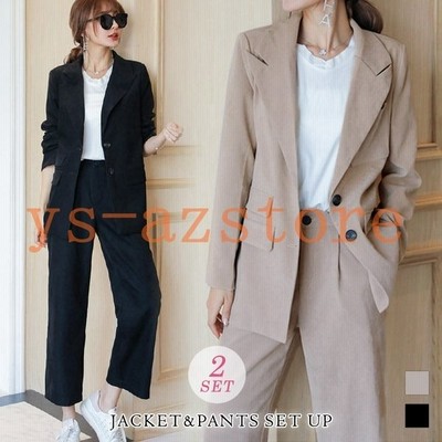 セットアップ レディース スーツ 春 夏 秋 黒 ジャケット パンツスーツ 上下セット ブラック ベージュ ワイドパンツ セレモニー フォーマル 代 30代 Tx Da 033 Youdear 通販 Yahoo ショッピング